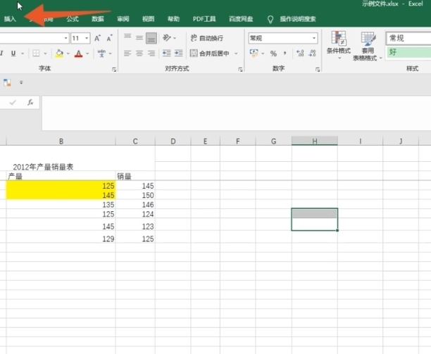 步骤1、进入excel表格文件后点击菜单栏中的插入,浏览图表区域。