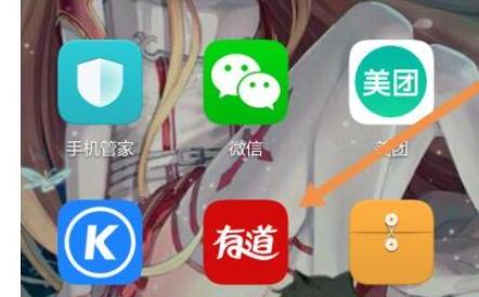 1、首先,我们需要一个有道词典,在手机上打开,