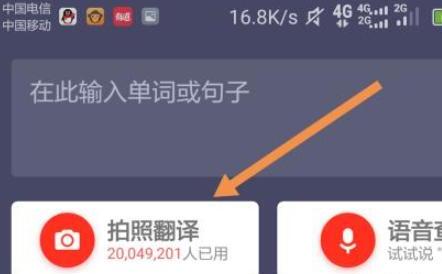 2、然后进来之后我们看到上面的拍翻译,我们点击下去,