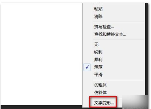 4、然后全选这部分文字并右击它,接着点击文字变形。