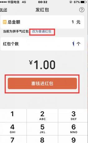 6、然后我们会进入发红包界面,点发红包,输入金额以后点击塞钱进红包生成二维码红包。