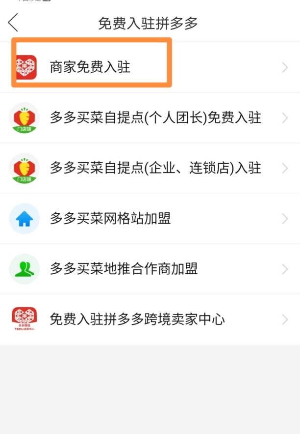 步骤2、点击免费入驻拼多多。
