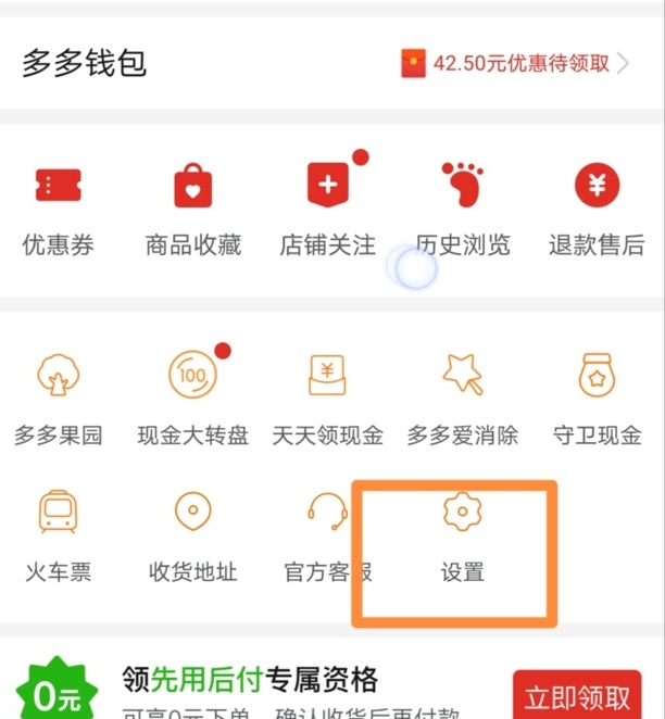 步骤1、打开拼多多软件,在我的界面点击设置。