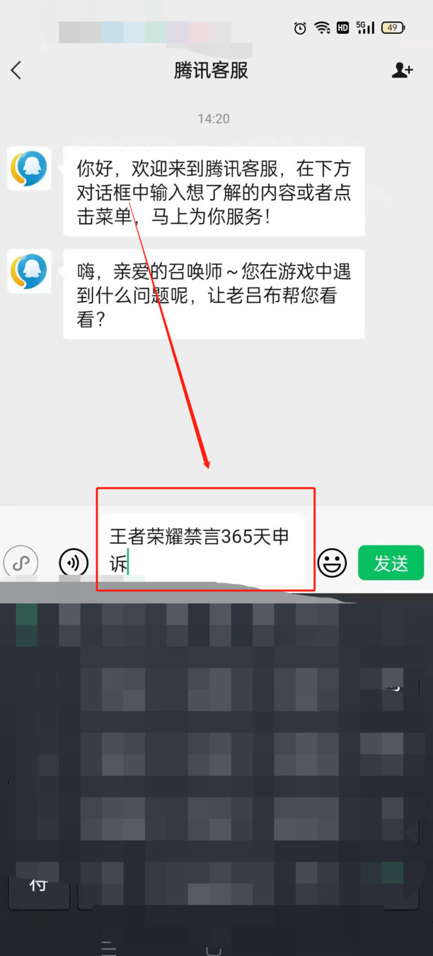 5,在对话框填写【王者荣耀禁言365天申诉】。