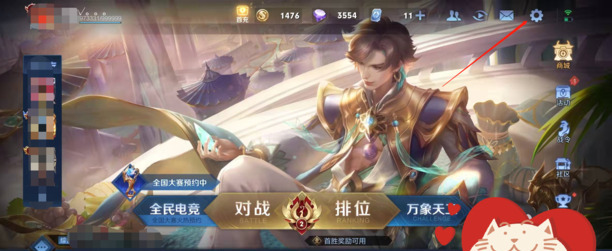1,打开王者荣耀,在游戏右上角点击【设置图标】。