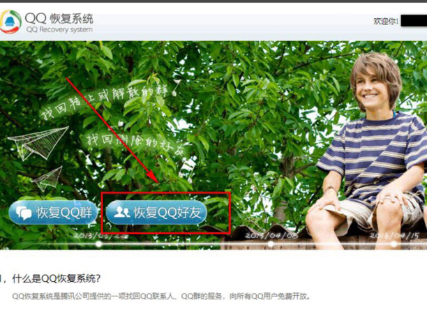 3、跳转至QQ恢复系统中,点击恢复QQ好友。