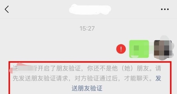 9、如果出现红色“!”以及拒收提示,说明对方把你拉黑了。如果出现红色“!”以及朋友验证提示,说明你被删除了。