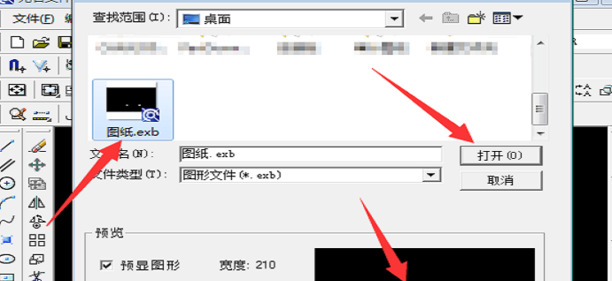 第五:路径中找到exb文件并选中,选中后可以查看图纸缩略图,点击打开查看完整内容。