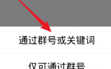 7、打开后,将查找方式设置为通过群号或关键词即可。