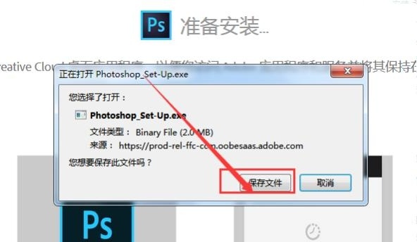 步骤3、、在弹出的下载确认对话框后点击对话框中的“保存文件”,下载安装程序。