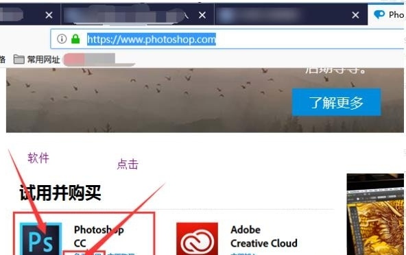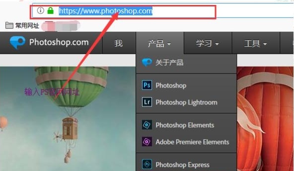 步骤1、、打开电脑上的浏览器,在网址栏输入PS的官网,进入PS官网。