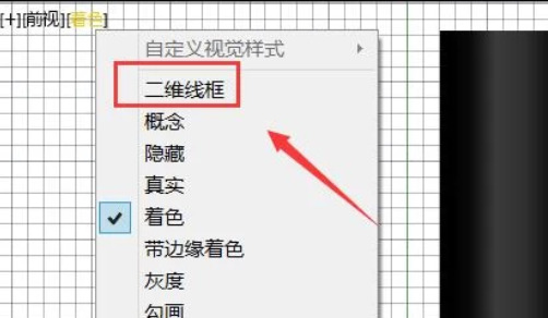 步骤6、再找到视觉样式选项,点击视觉样式选项在其下拉菜单里找到2d线框选项。