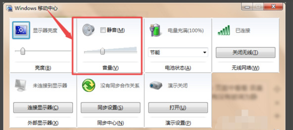 步骤3、然后按下键盘的 win+X 快捷键,在打开的 windows移动中心页面中看看音量有没有被调为静音,也可以看看右下角的 扬声器 图标,看看有没有被调为静音,可以看到,也没有。