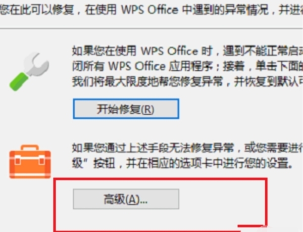 步骤2、、进去wps配置工具之后,点击高级,如下图所示。