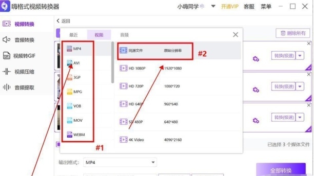 步骤3、软件左下角有一个“输出格式”和“输出路径”按钮,点击“输出格式”,将调整参数的功能按钮设置出来,选择所需的";mp4";,在设置其他参数等。