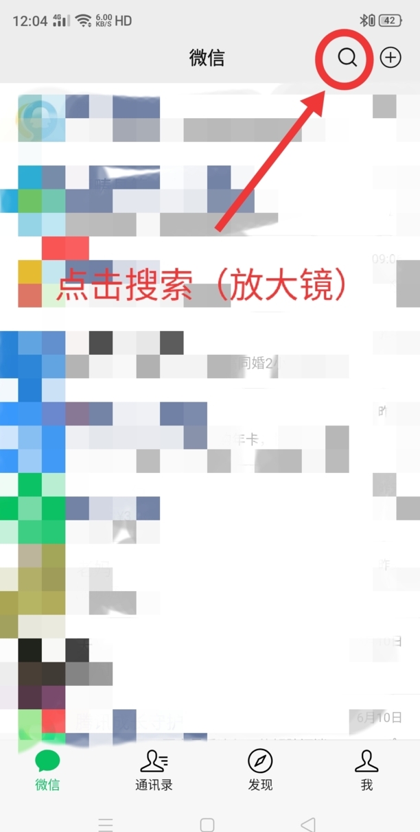 2、进入微信后点击搜索(放大镜)