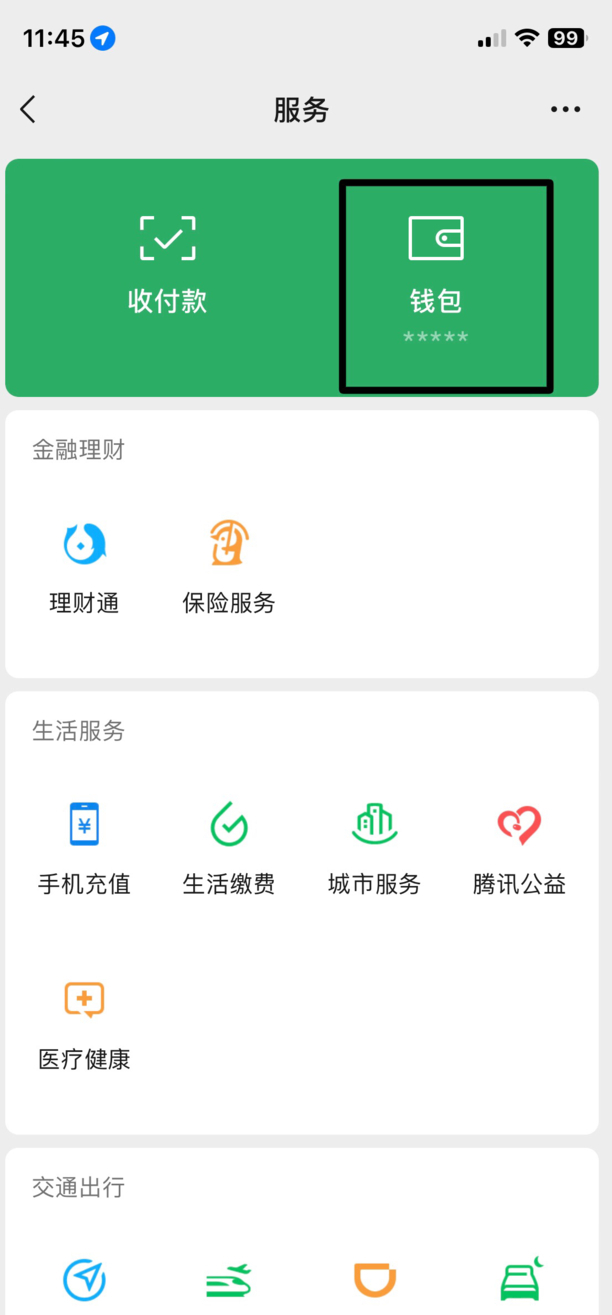 第二:选择“钱包”。