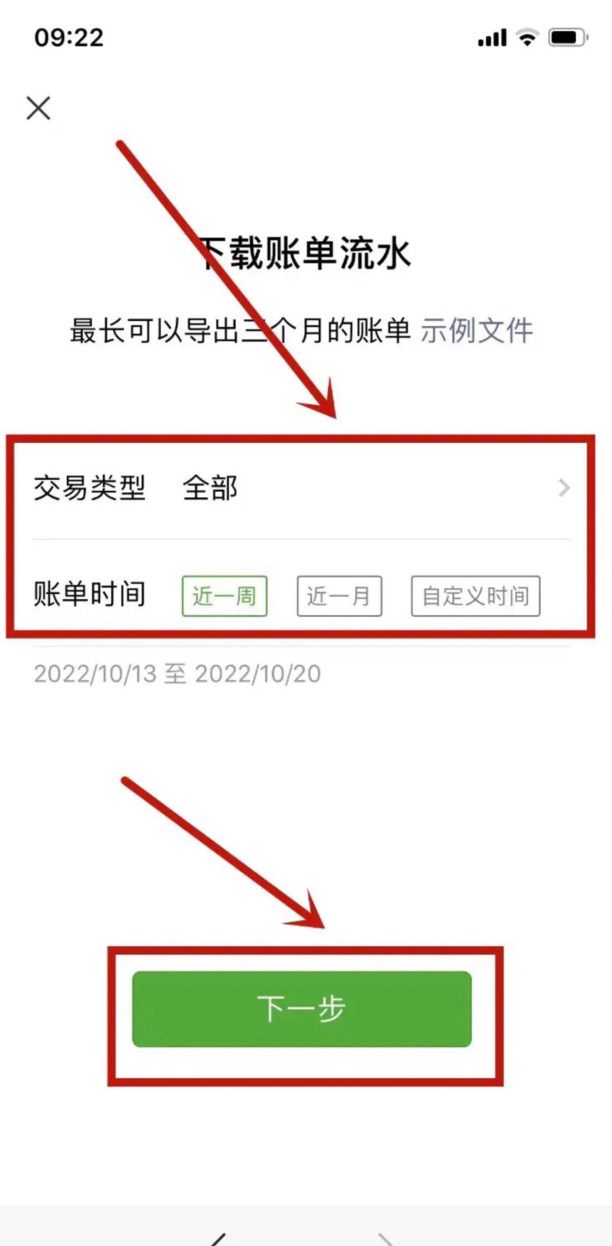 7、选择需要下载账单流水的时间并点击下一步。
