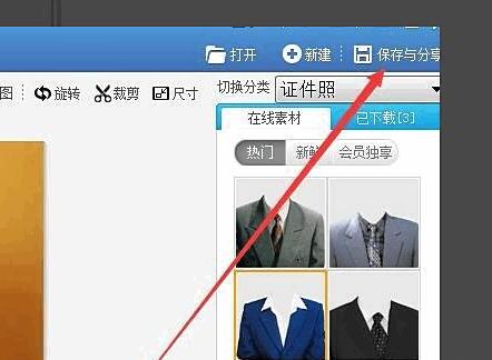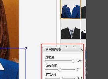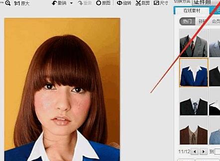 5、然后在右侧的素材库中选择一个证件照的衣服图片。