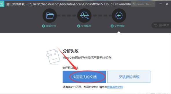 1、首先打开“金山文档恢复”,再选泽“找回丢失的文档”,单击鼠标左键,
