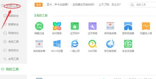 2、再选择位于页面左上角的“全部工具”,再单击鼠标左键,