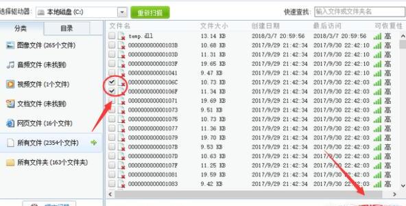第五:扫描完成后,界面会出现在硬盘里扫描到的文档,这些文档是根据它的格式来排列的,选中并打开相应类型的文件夹,勾选想要恢复的文档和数据,再单击【恢复】即可。