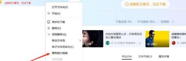 1、首先我们打开迅雷,找到自己无法正常下载的文件,右键点击文件选择复制磁力链接。