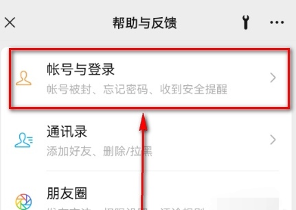 步骤5、.到帮助与反馈页面后点击:帐号与登录。