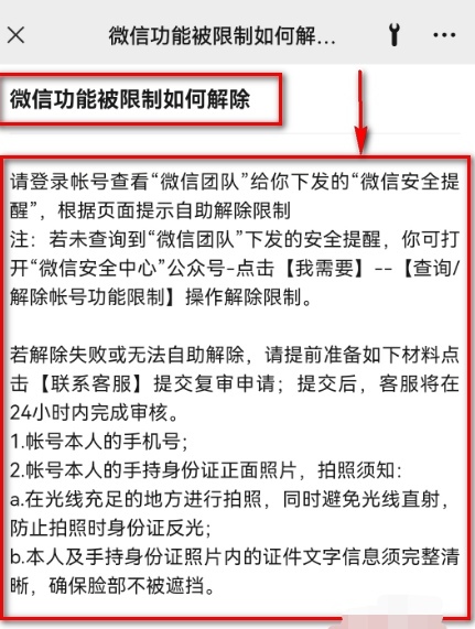 点击: (微信功能被限制如何解除)按钮即可查看(如何解除)。