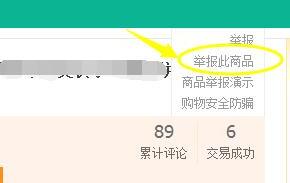 2、点击,会下拉三个选项,选择“举报此商品”,如果想知道更详细规范的填写流程,也可以先看看商品举报演示。