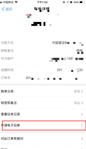3、打开支付宝转账信息,找到下方有个【申请电子回单】。
