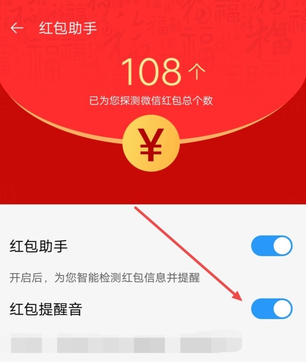 4.将红包提醒音后面的开关打开即可。