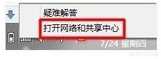 通过IP地址查找,例如连接了家里的无线,右击笔记本右下角的网络图标选择“打开网络和共享中心”。