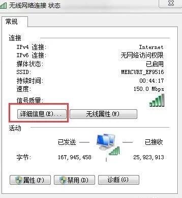 找到连接的无线网后双击,打开无线网络连接状态,再选择“详细信息”。
