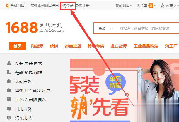 步骤4、、若是有用户名的,可以直接在阿里巴巴主页面上方点击的“请登陆”。