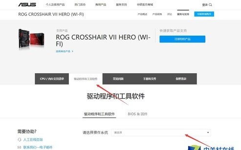 然后去华硕官网下载对应你主板型号的AURA软件,笔者这里用华硕ROG CROSSHAIR VII HERO(Wi-Fi)为例,选择个人及家用产品-主板-主板系列。