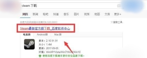 第一:点击输入【Steam下载】,进入网址。