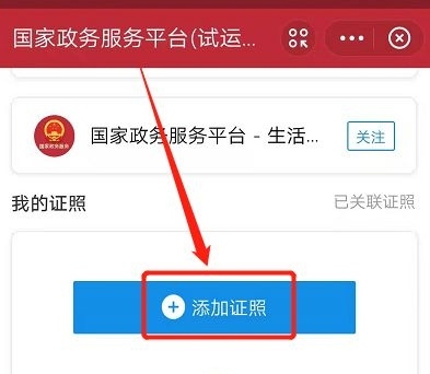 第二步,进入到国家政务服务平台页面,下滑到添加证照。