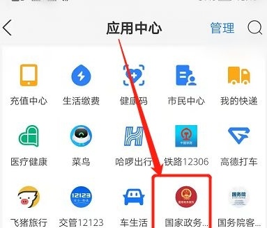 首先,在支付宝应用中心页面,点击国家政府服务网。