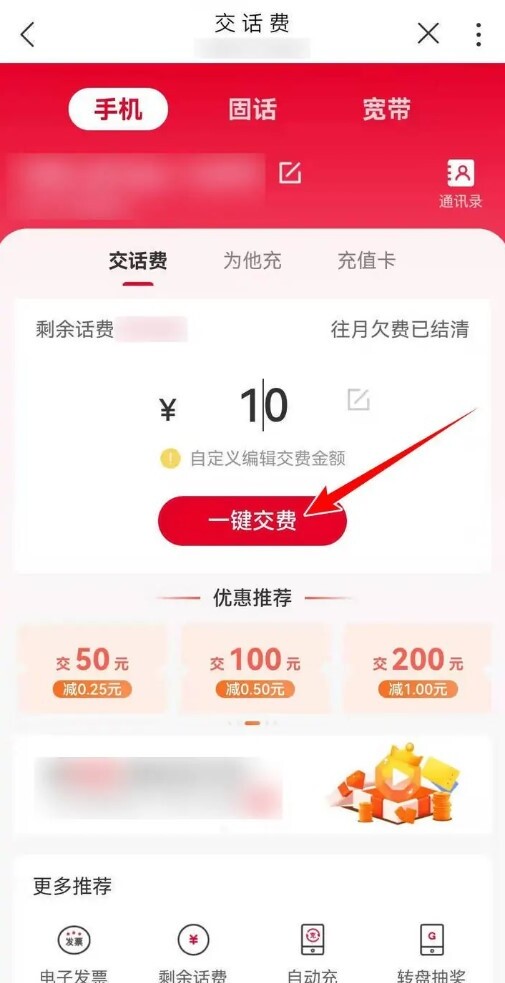 第二:输入需充值手机号码,点击充值金额。根据页面提示选择支付方式进行充值即可。