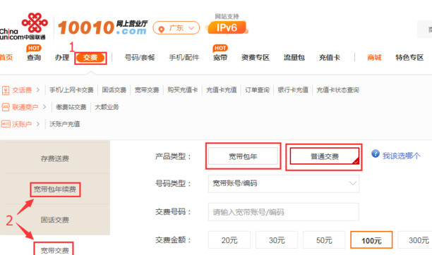 2、登录www.10010.com,点击“首页-宽带-宽带续费-包年续费”,即可进行宽带续费。