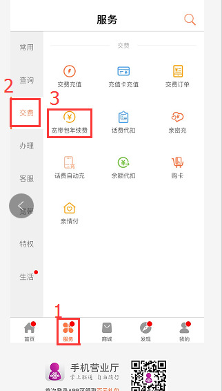 1、您可下载中国联通手机营业厅APP,打开APP后点击“服务-交费-宽带包年续费”即可便捷办理宽带续费。