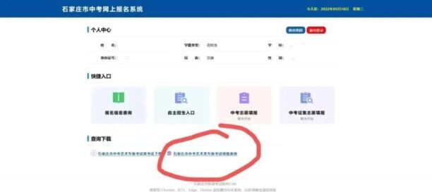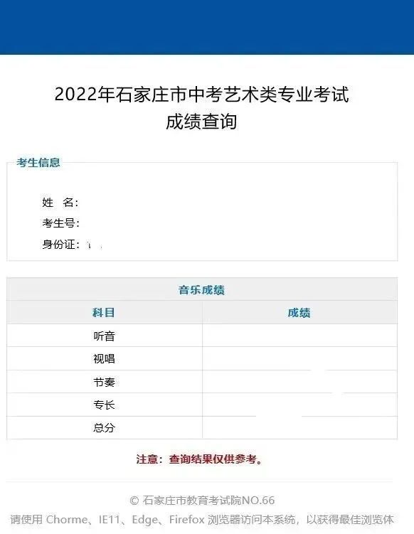 2022年石家庄市艺术中考成绩查询入口,石家庄市中考信息管理系统。