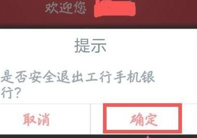 8、弹出的“是否安全退出工行手机银行”,点击“确定”。