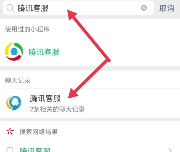 1、首先,打开微信,搜索腾讯客服并点击打开。