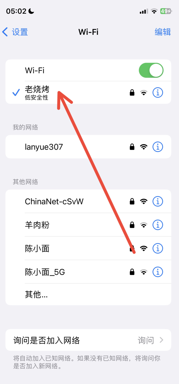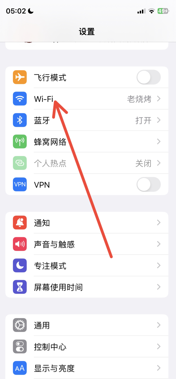 首先连接宾馆的无线网。打开设置,点击WiFi,连接宾馆的无线网。