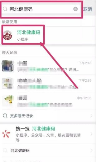 打开微信搜索“河北健康码”小程序并打开。