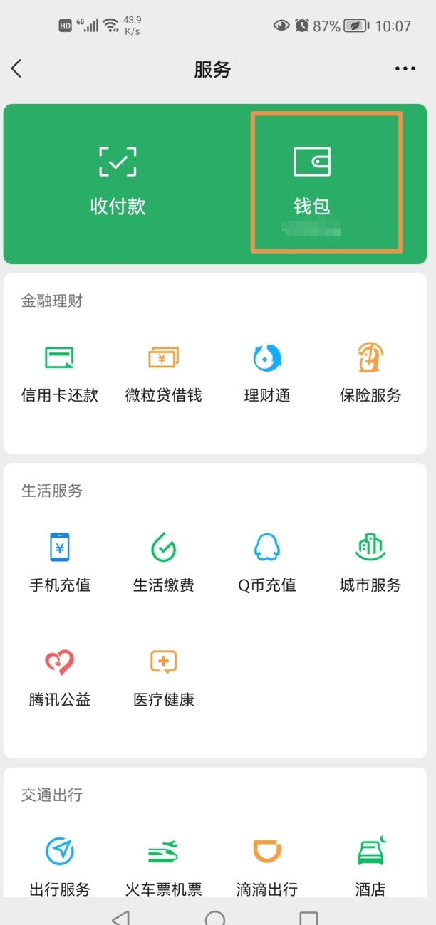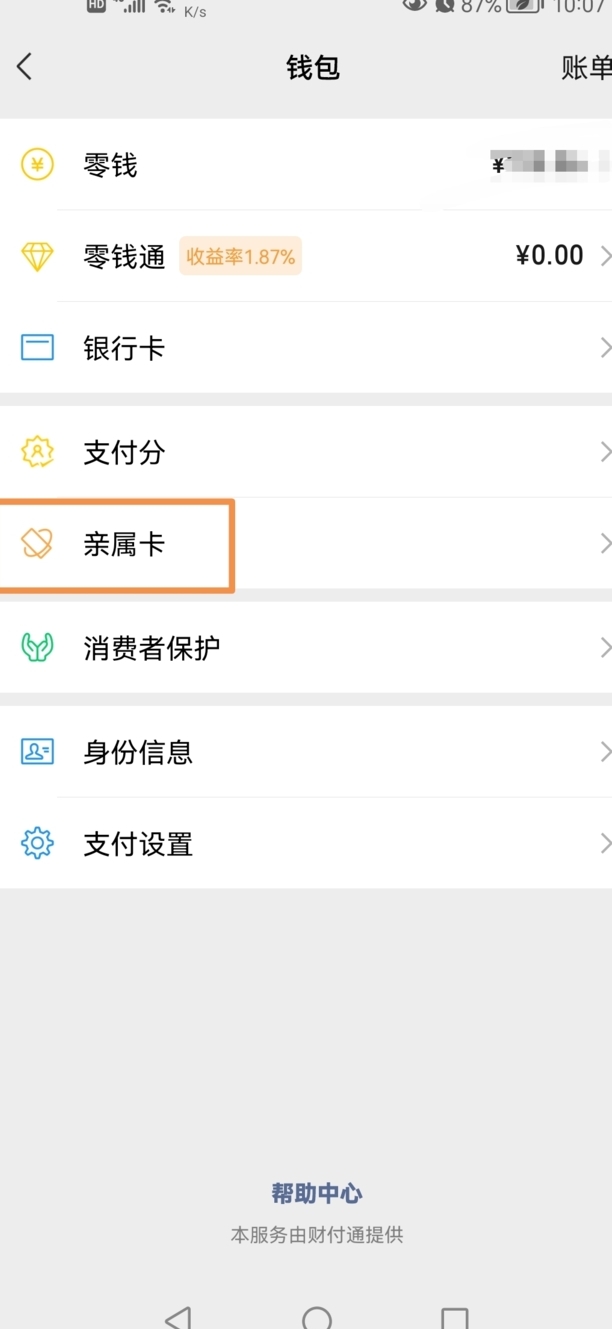 第一:从微信钱包右上角的四方格进入微信支付中心,找到亲属卡;