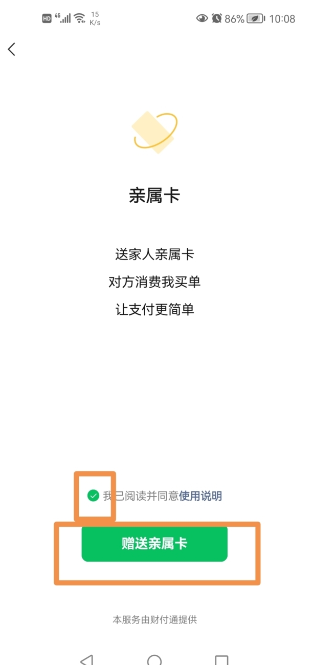 第六:注意事项:亲属卡赠送对象需要在一天内领取才能真正赠送成功;在这个页面可以设置亲属卡消费的优先扣款方式。