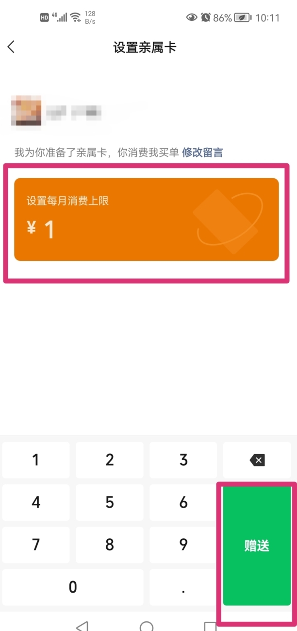 第四:设置每月亲属卡消费额度,最高为3000元;